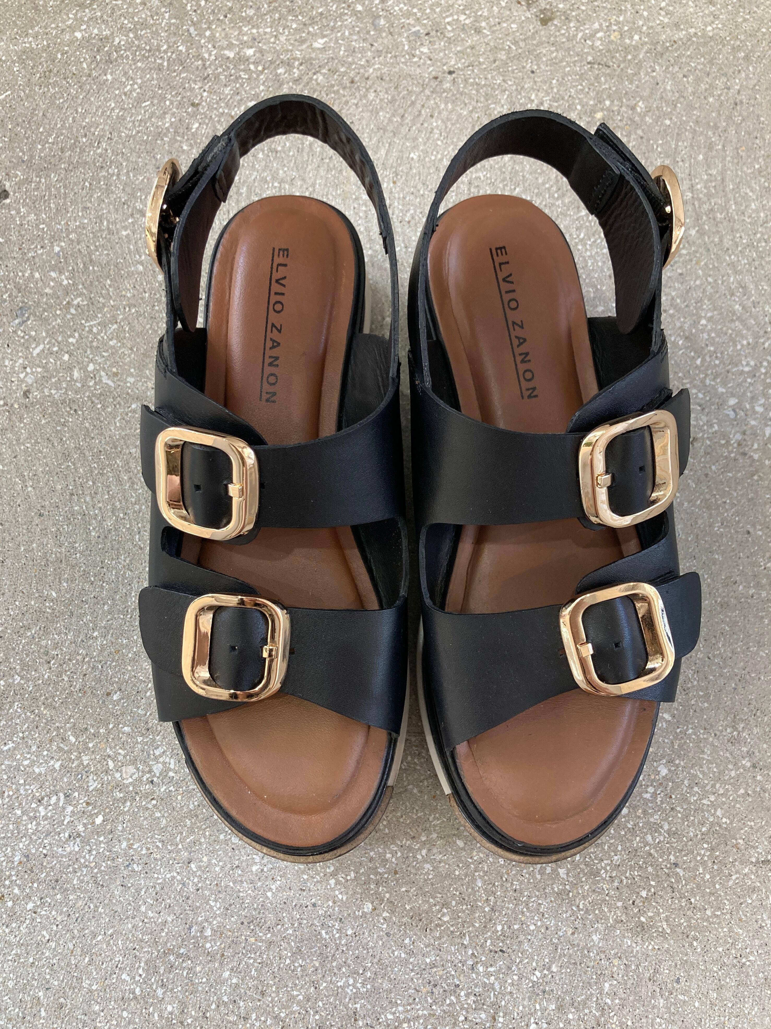 CIRCULATION送料無料【ELVIO ZANON エルビオ ザノン/イタリア】本革 アッパーソール 本革 レザーサンダル NO: MA5102 / NERO