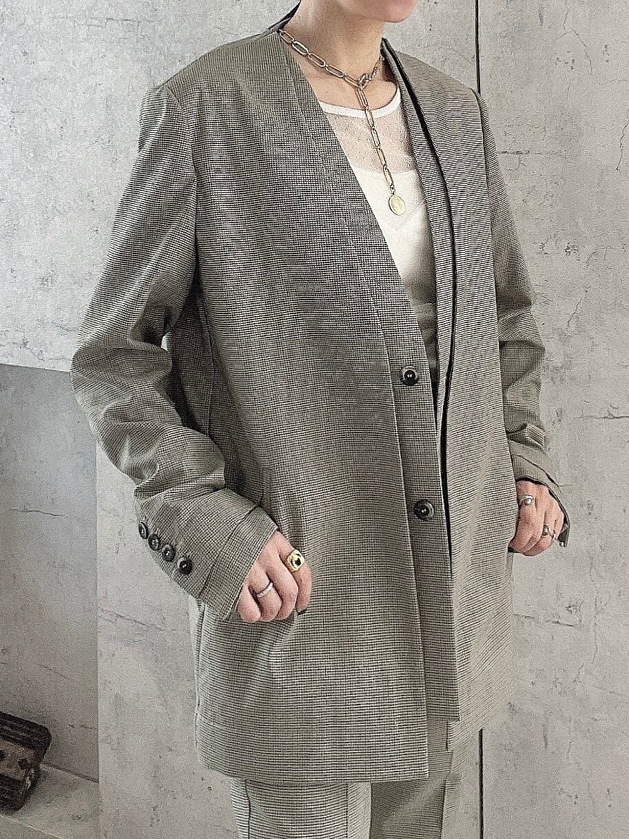 CIRCULATION送料無料【DAWEIダウェイ/フランス】ノーカラージャケット ジレ付デザイン チェック NO. DW23FV02/T05
