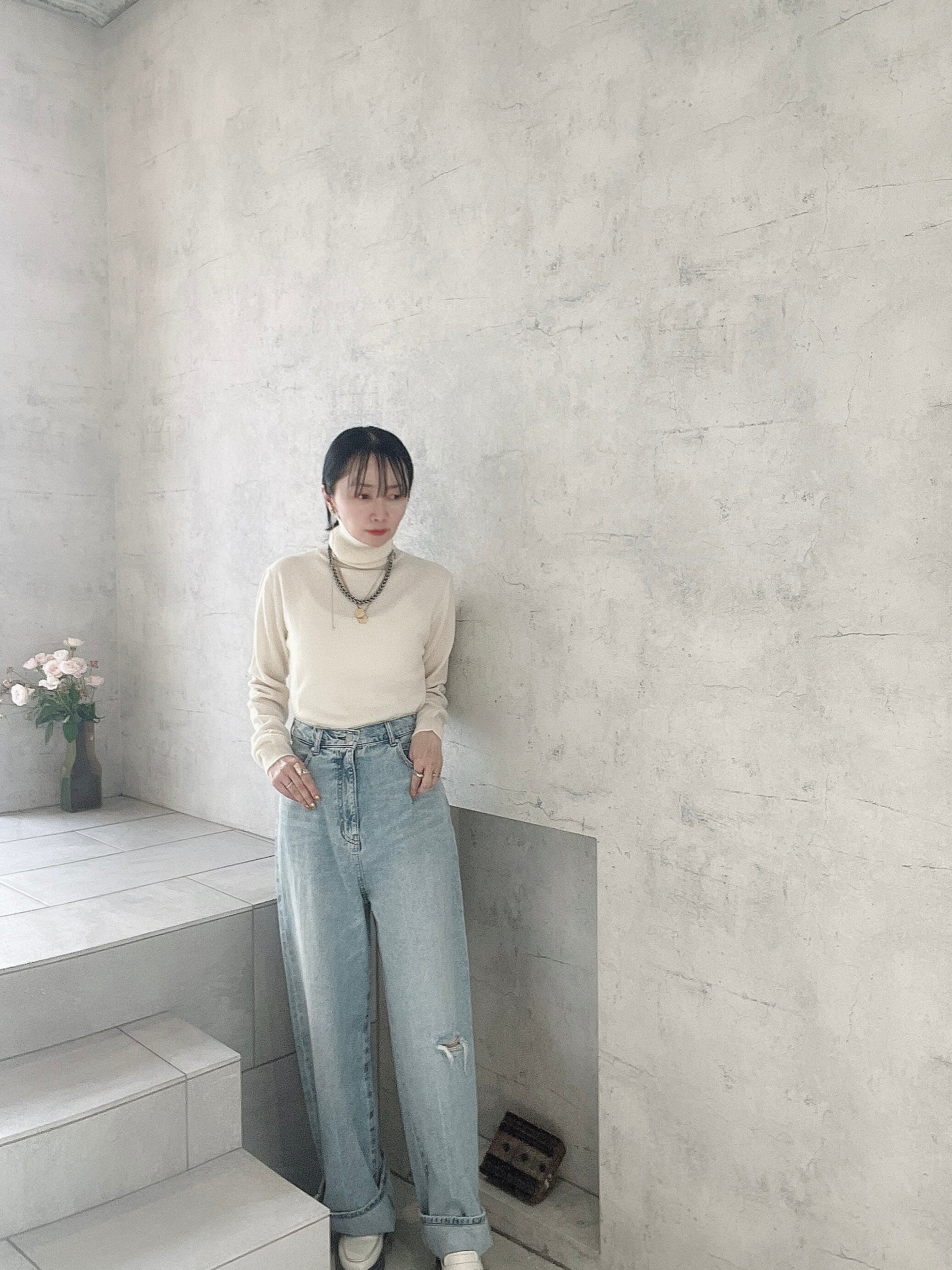 まだまだ寒い春コート下にも春カラーで差し色や、コートを脱ぐ季節、すぐにコットンでは寒い時期にも春らしいスタイルに役立つアイテムです。