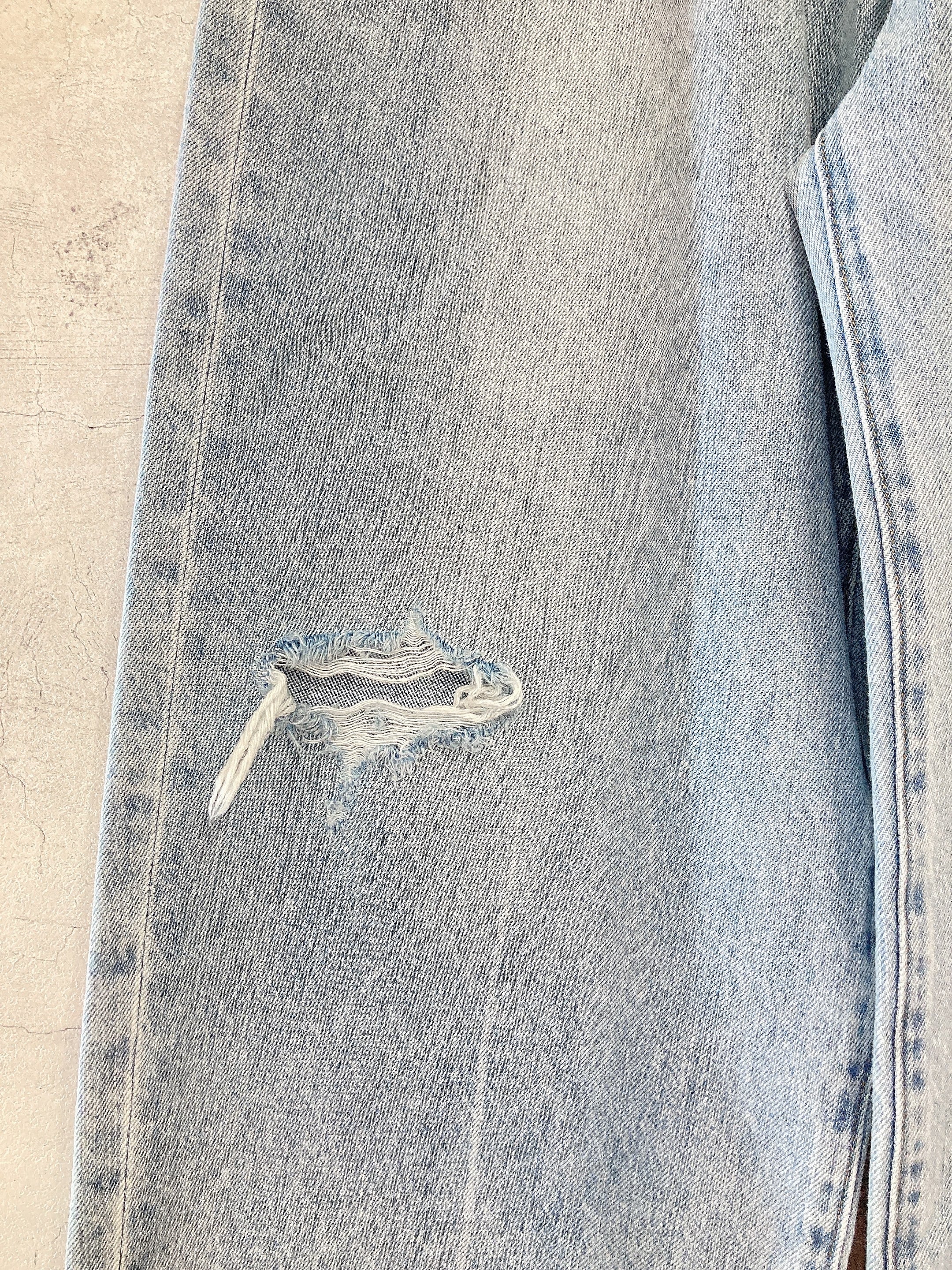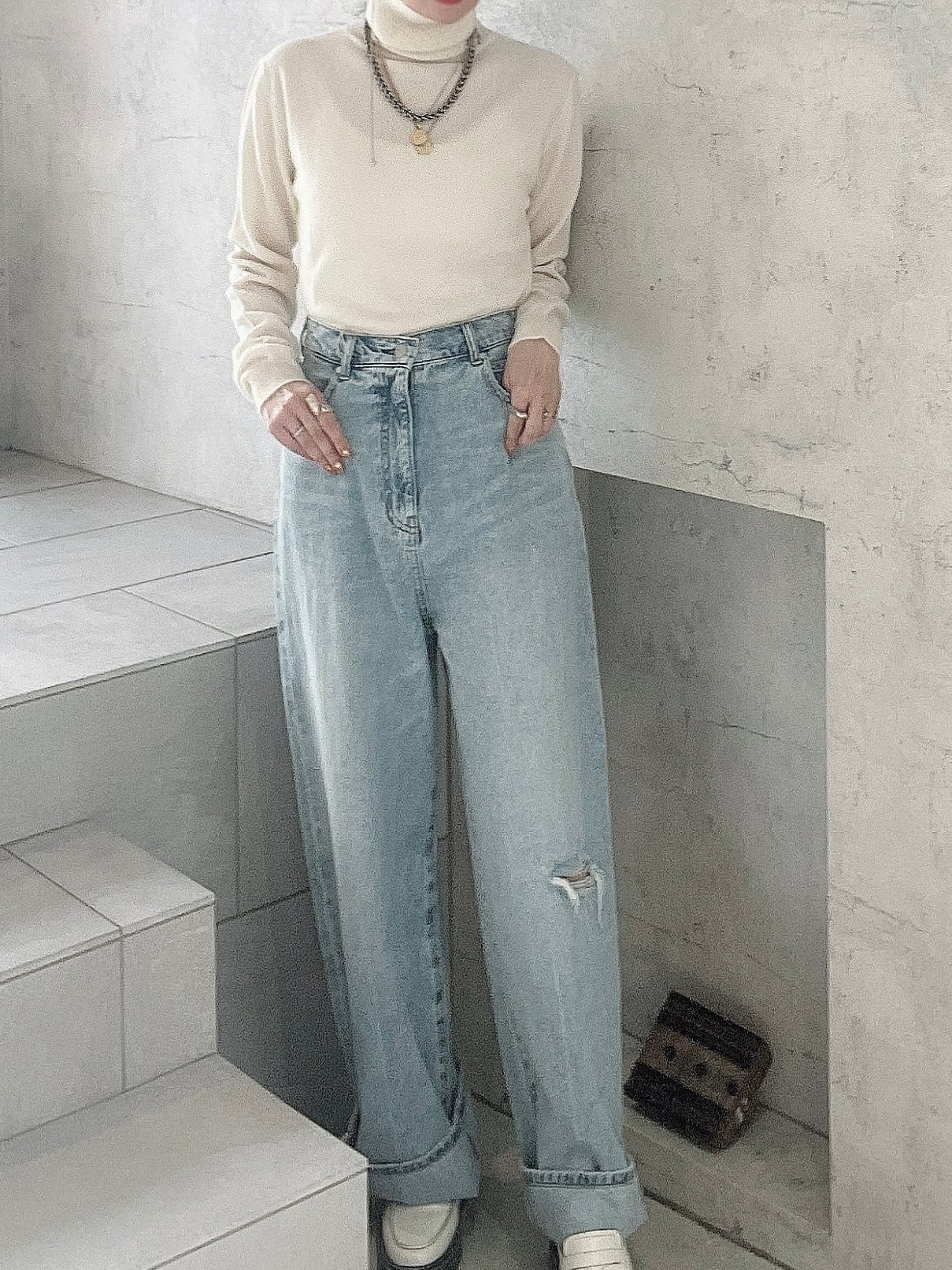 ゆるっとしたラインと程よいダメージが春夏らしいスタイルでありながらウエストやヒップラインは綺麗に見せてくれるソフトなウォッシュデニム。