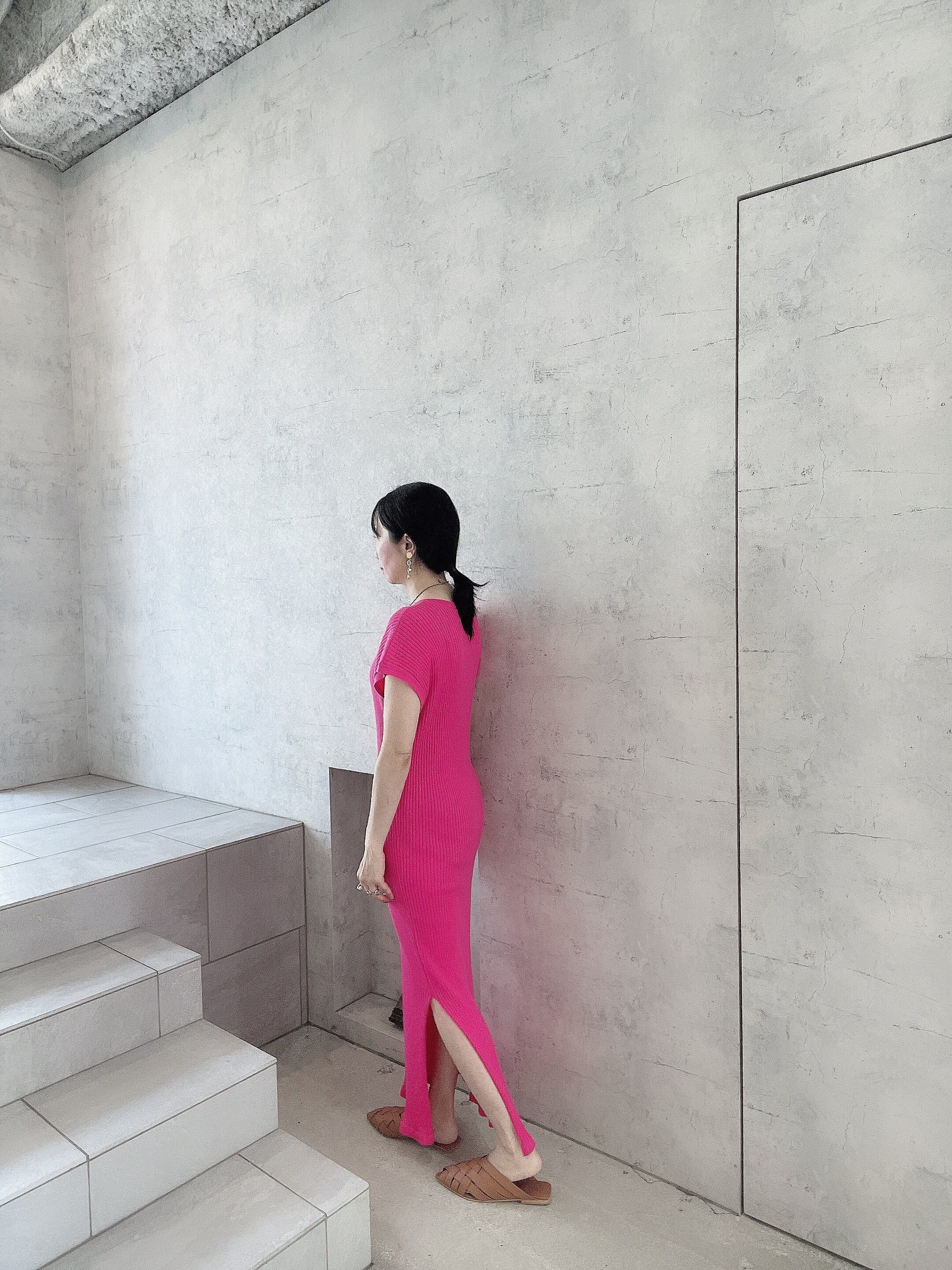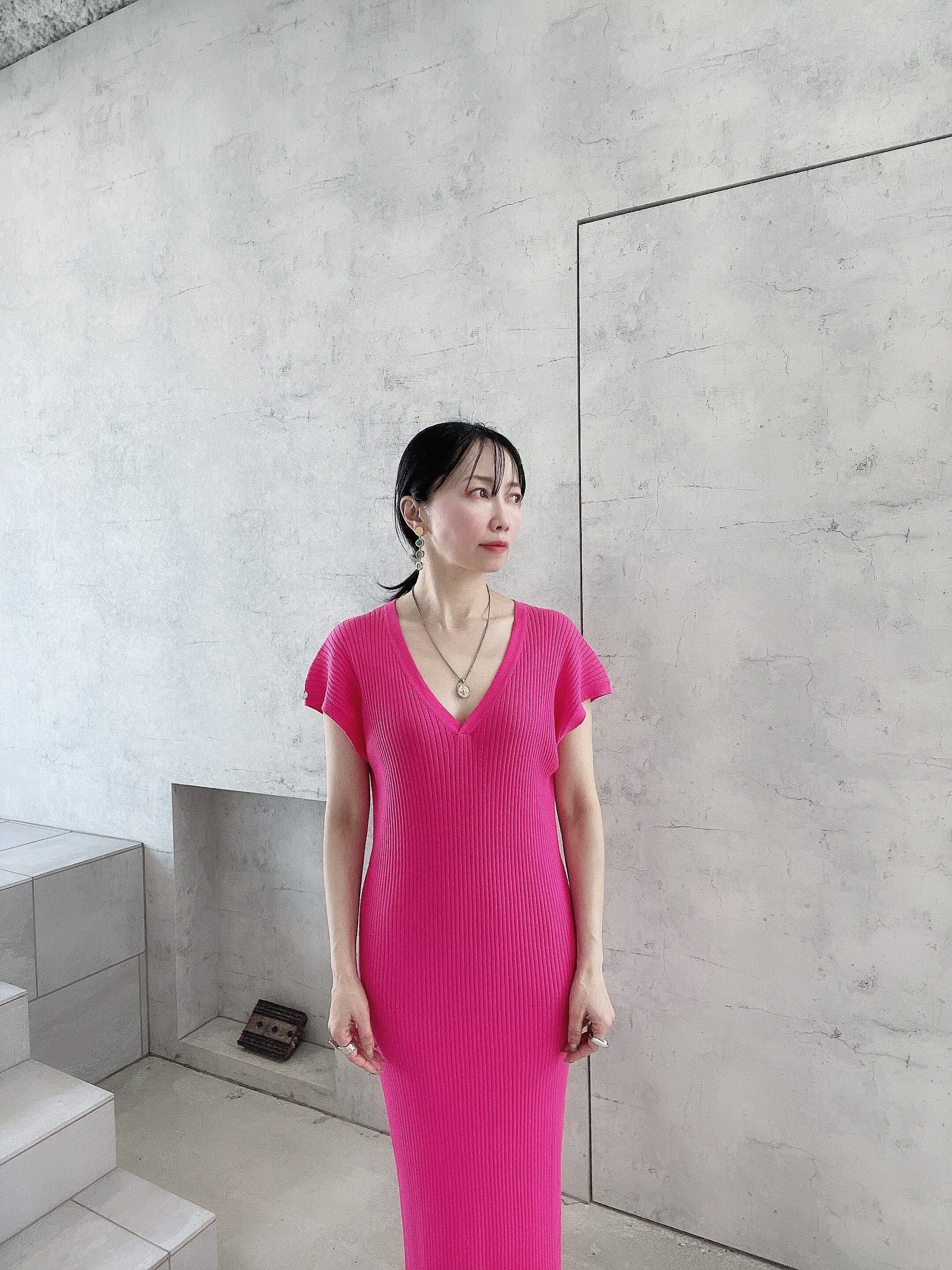 リブでスッキリと見せつつ、天然素材で上質な素材ならではの柔らかで張り付かない質感が着心地の良さだけでなく身体を綺麗に見せてくれます。