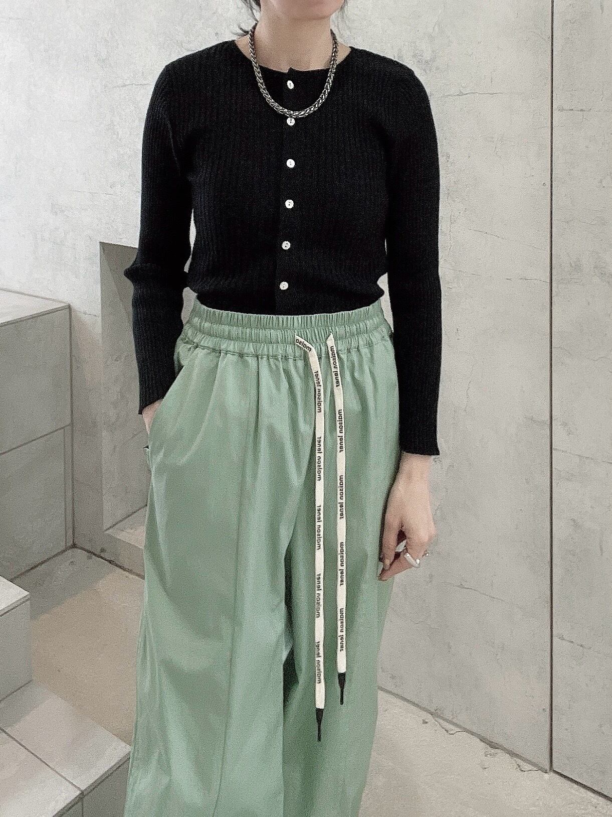 ペールTONEが欠かせない24SSのスタイリングにオールマイティに役立つ明る過ぎず暗過ぎない絶妙なカラーと、ウエストのドローストリングしたブランドオリジナルの紐がスポーティーさとリラックス感をミックスしてくれます。