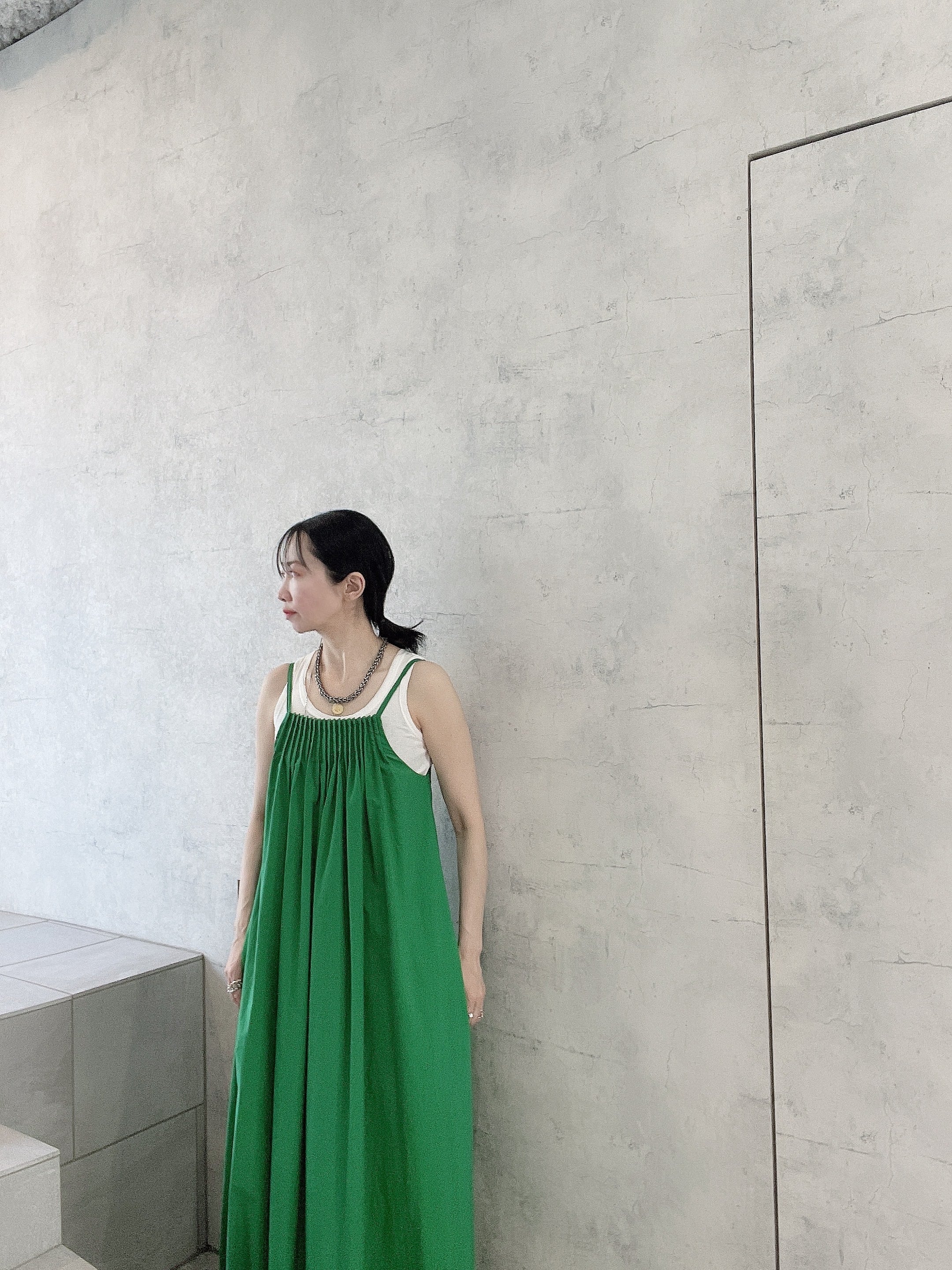 胸元と背中のプリーツや裾のスカラレースがコットン100%で涼しく着やすくありながらスタイルをきめてくれるデザインとカラー
