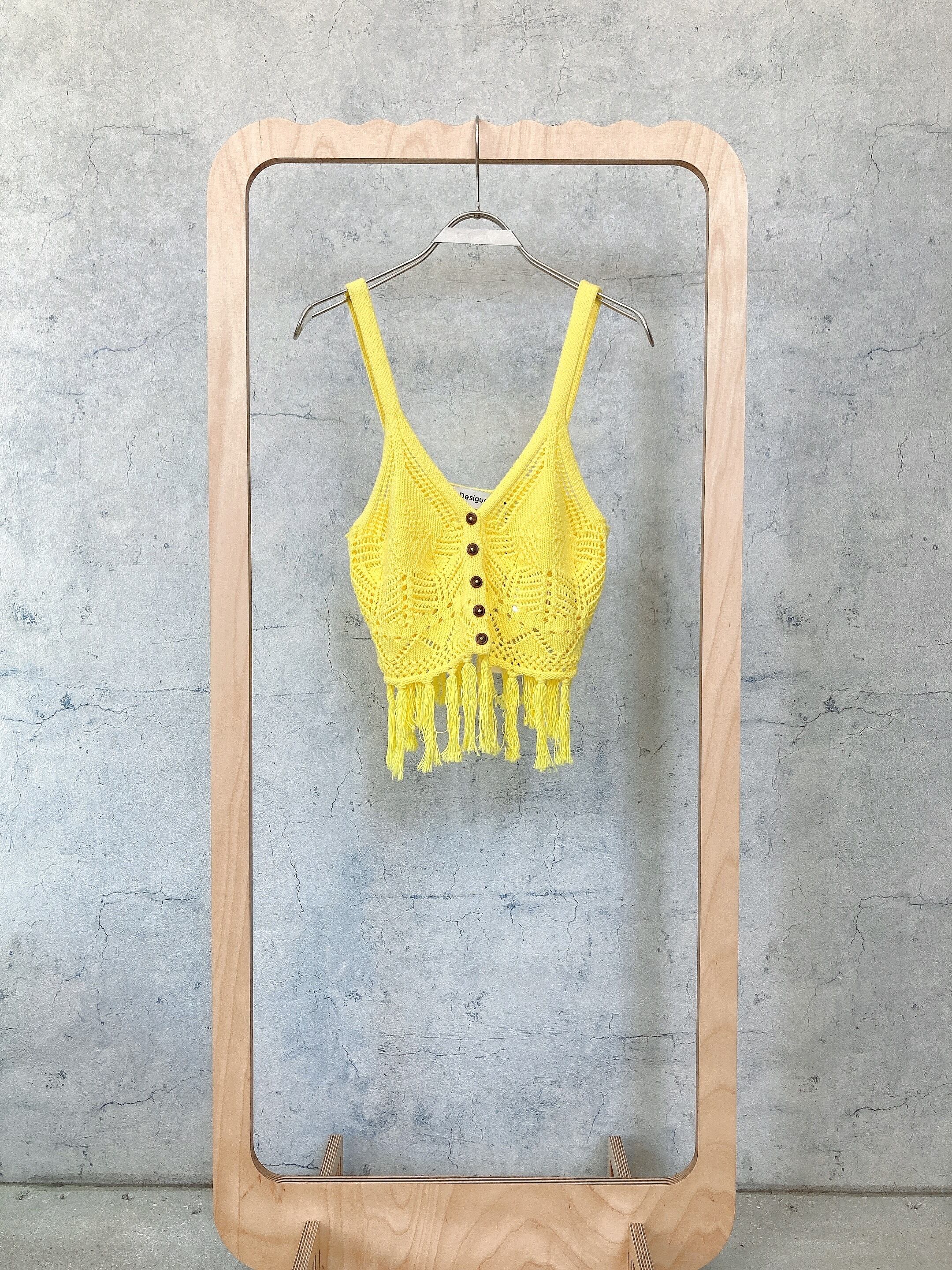 CIRCULATION送料無料【Desigual デシグアル / スペイン】裾フリンジニットキャミ キャミソール ベスト ニットキャミ フリンジ 裾フリンジ ブラック イエロー NO:24SWF01 / 2000(ブラック) 、8018(イエロー)