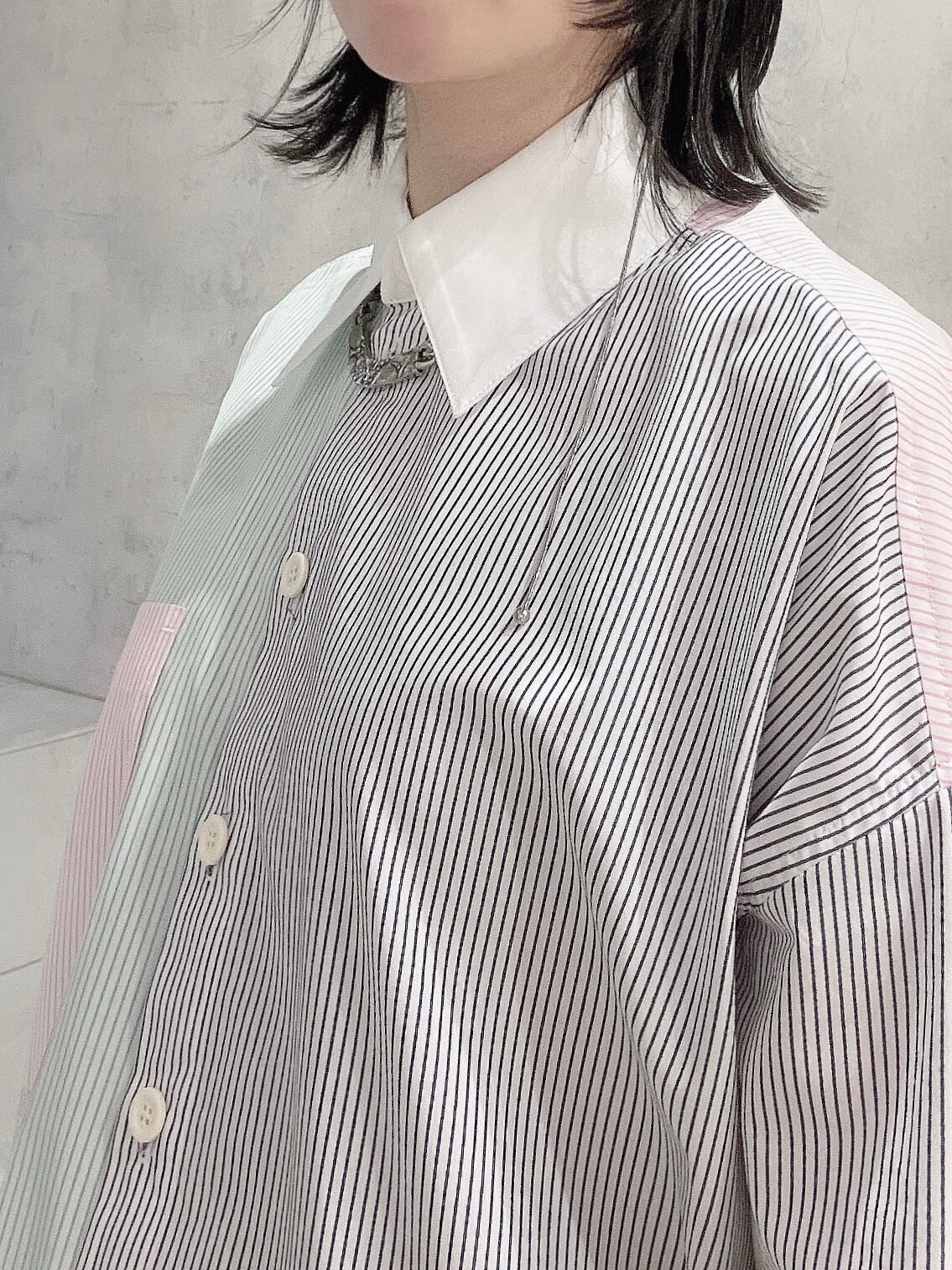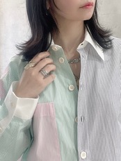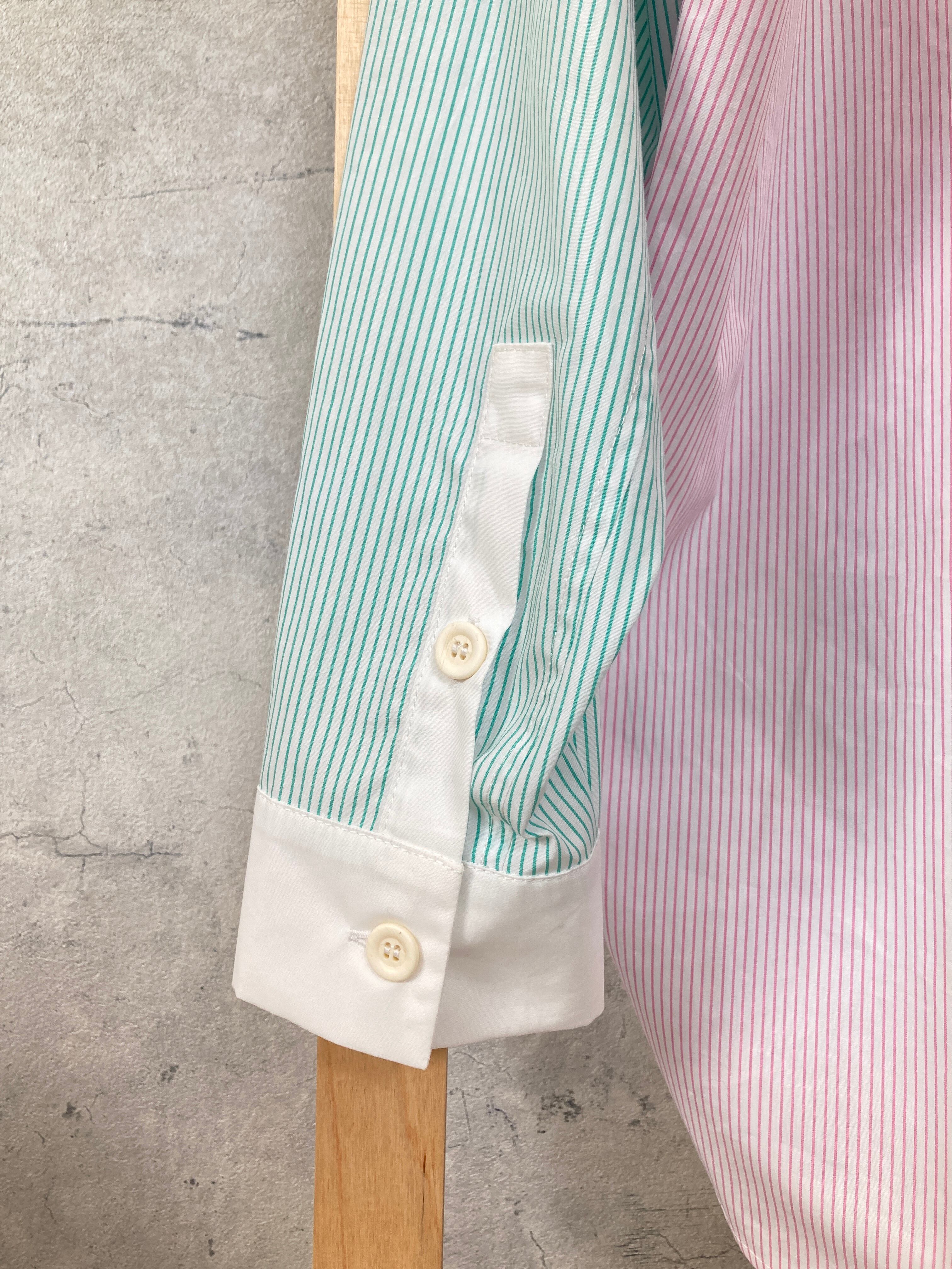 CIRCULATION送料無料【maison lener メゾン レネー/フランス】長袖コンビネーションシャツ ストライプ グリーン NO. ARTEFACT ML-A6MA / Green