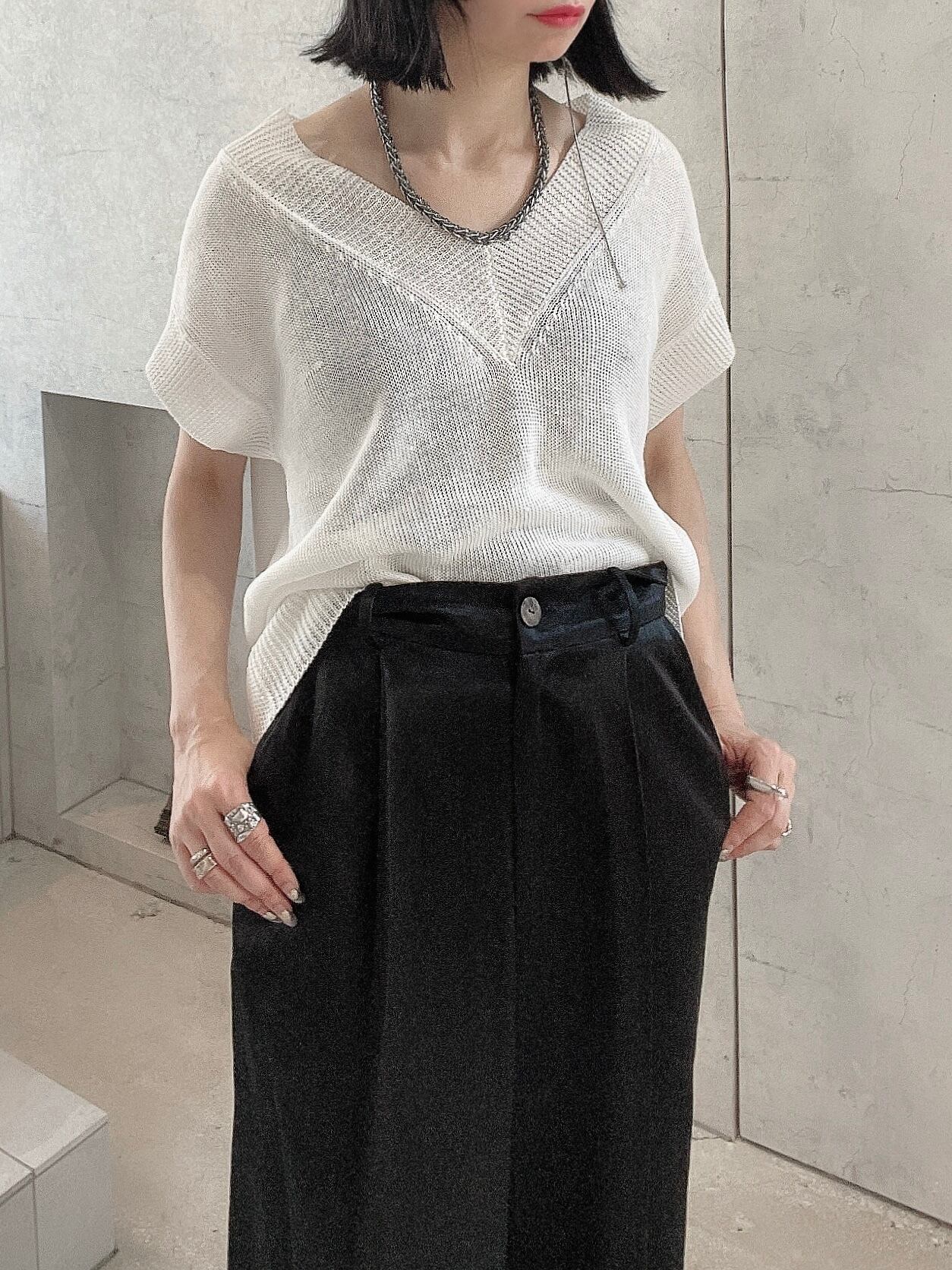 Vネックラインがしっかりと作られているため1枚でさらりと着用できます。
