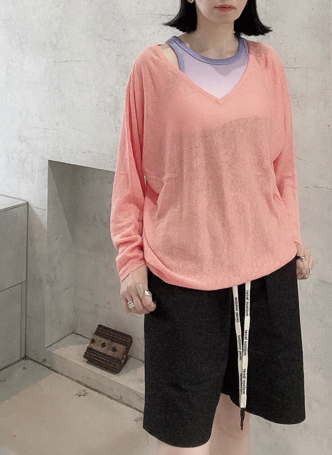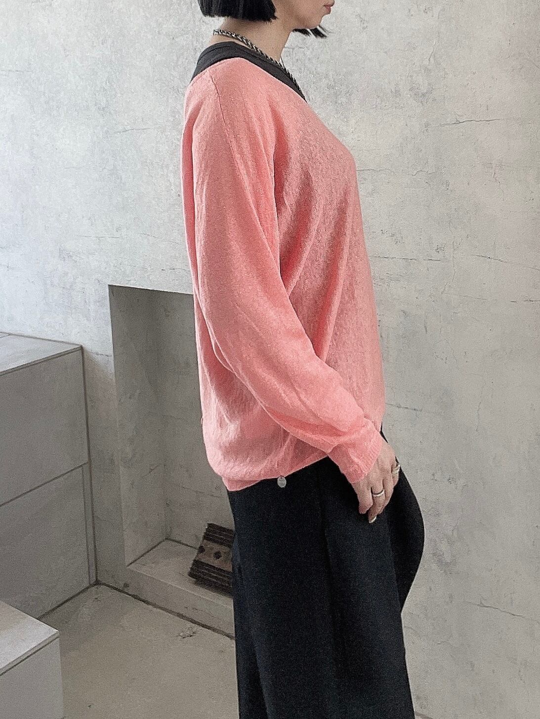 CIRCULATION送料無料【A・POIL アーポワル/フランス】Vネックリネンニット リネン 麻 カシミヤ カラーニット ニット サーモンピンク NO: AP FARFOUILLE UNI25SS / Bloom