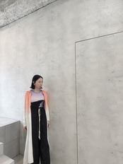 絶妙なカラーグラデーションが目を引く、スキッパーロングカーデ。
