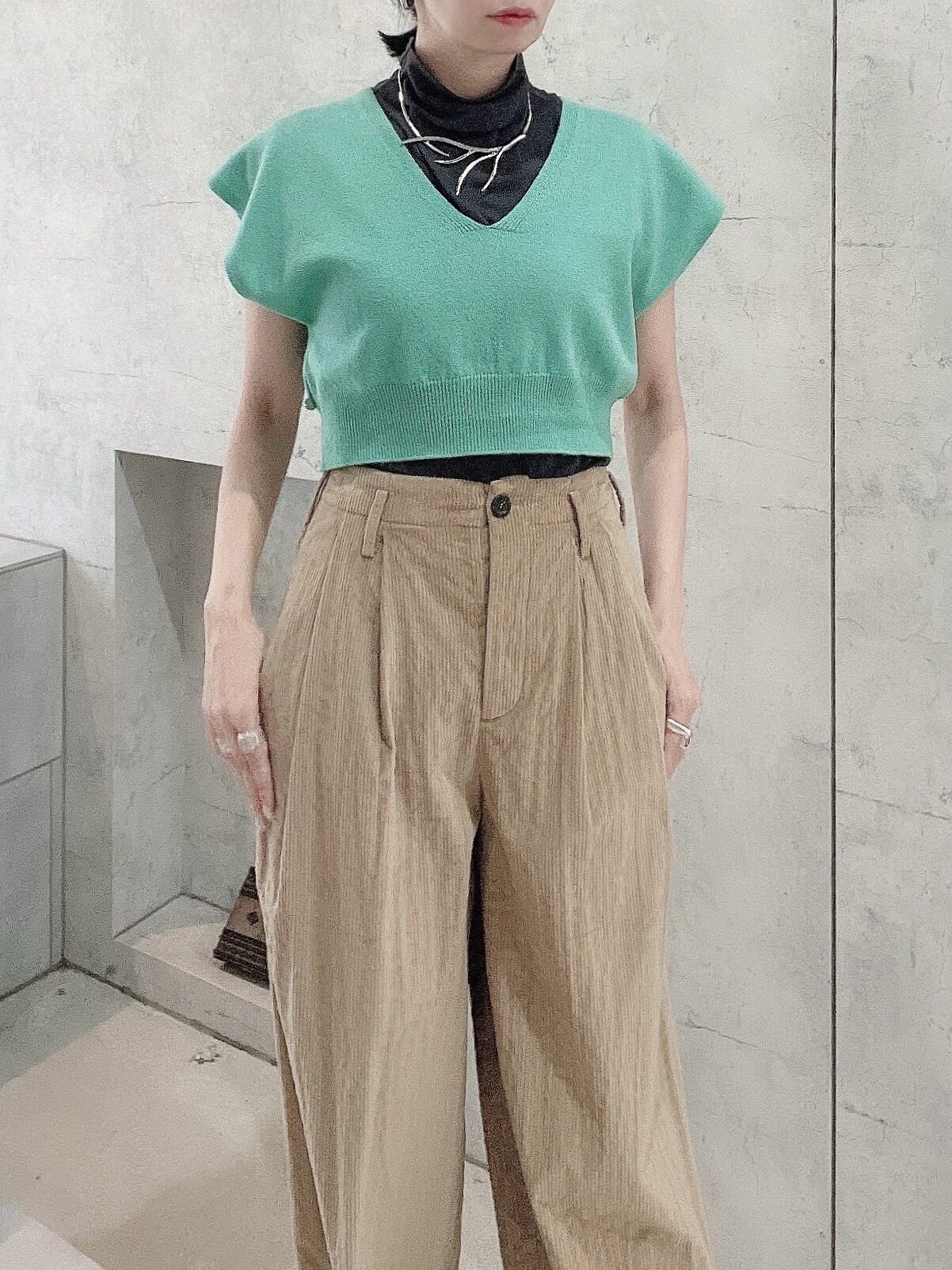ショート丈がスタイルに差を付けてくれます。ジャケットinにポイントにもなる一枚。