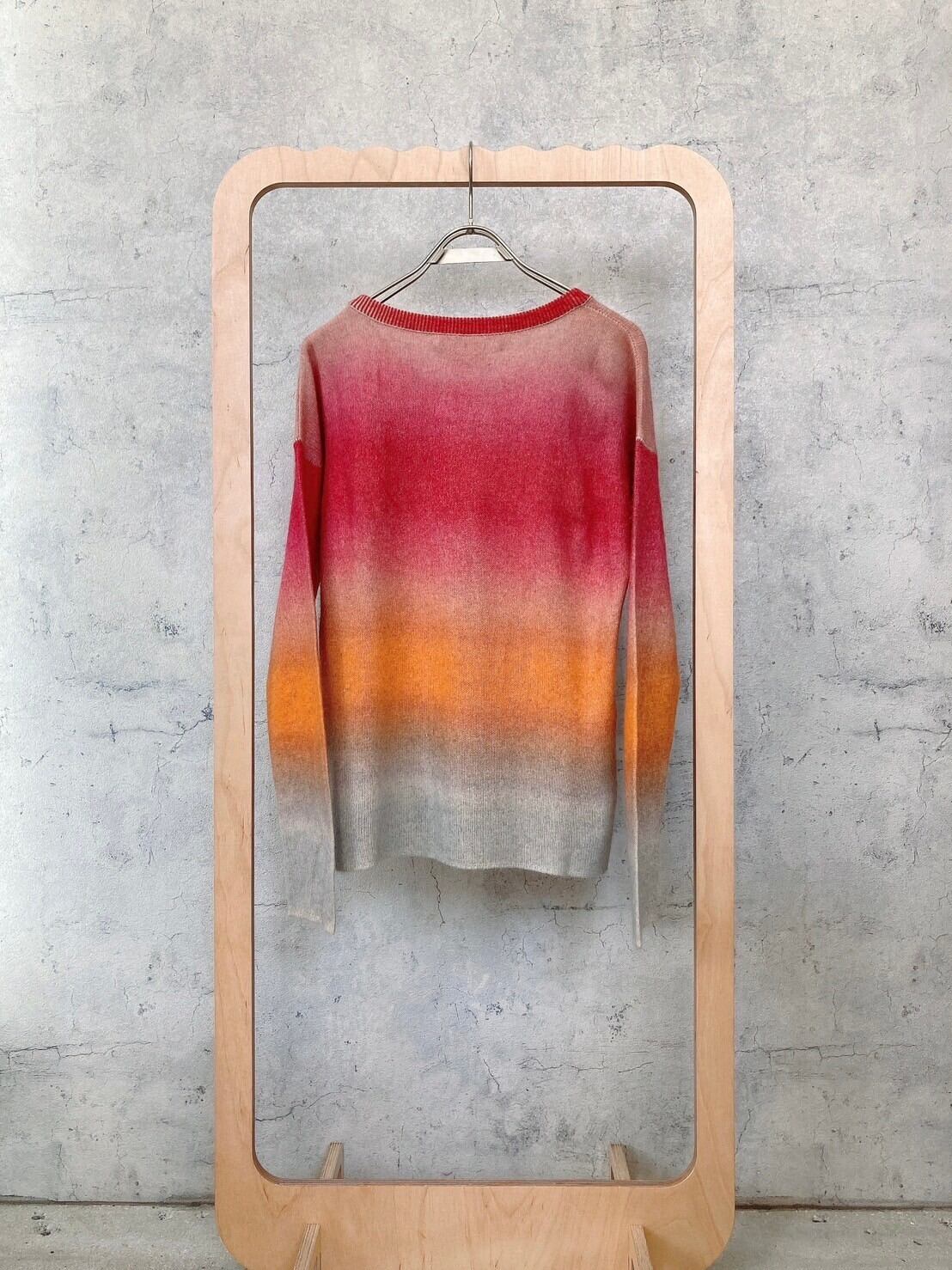 染色技術の高さによる後染めのグラデーション使いが、他にないクルーネックニット。