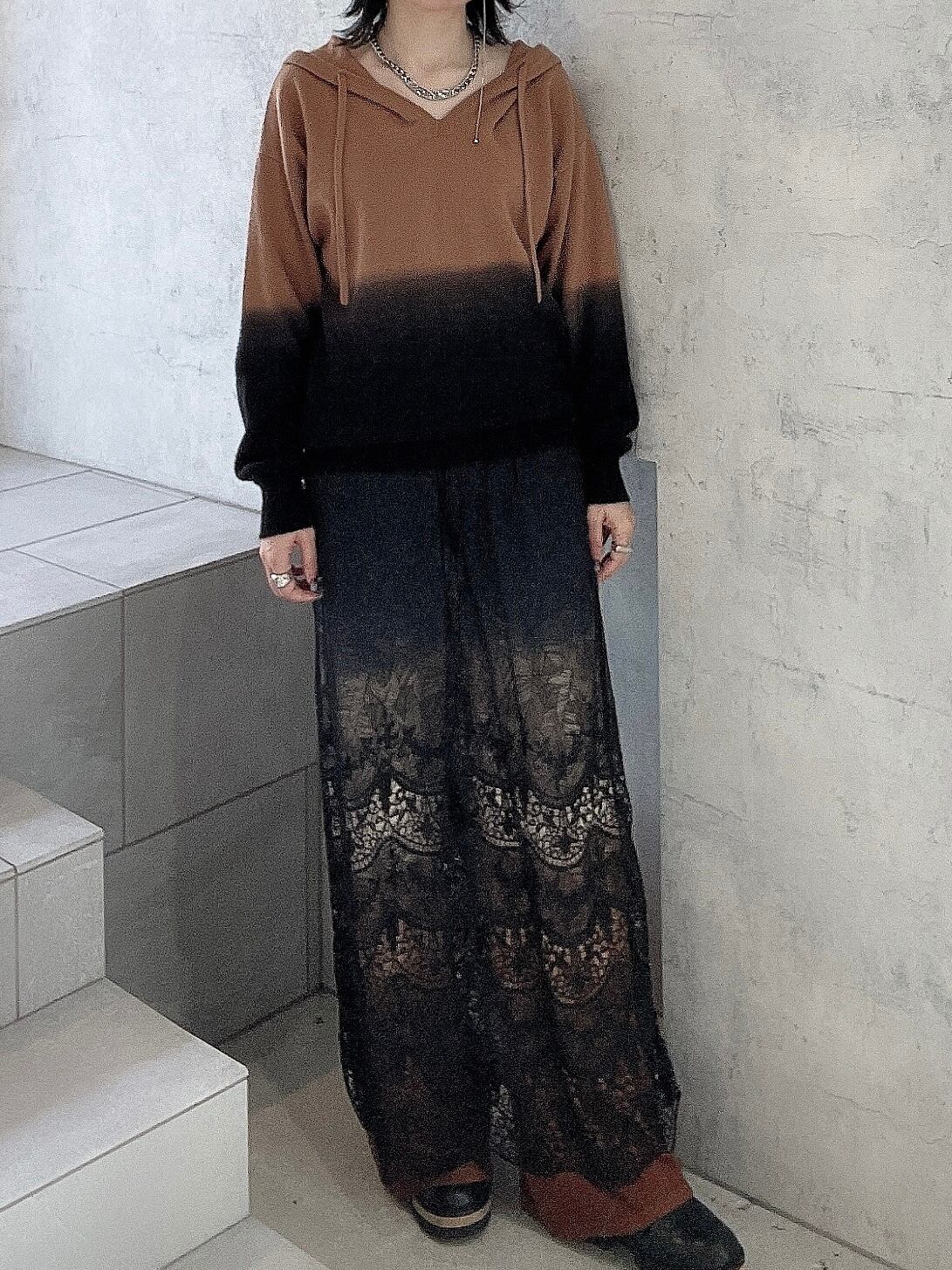 CIRCULATION送料無料【A・POIL アーポワル/フランス】茶色グラデフーディーセーター グラデ フーディー カシミヤ100% NO: AP ETINCELLE24AW / COL D(Butter Scotch/Print Black)