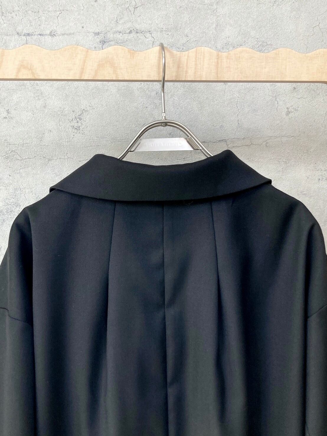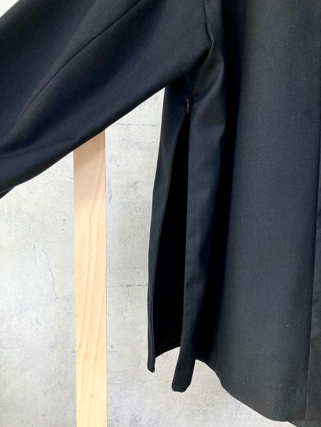 背中のタックやサイドのファスナースリットなど拘りのあるデザイン。