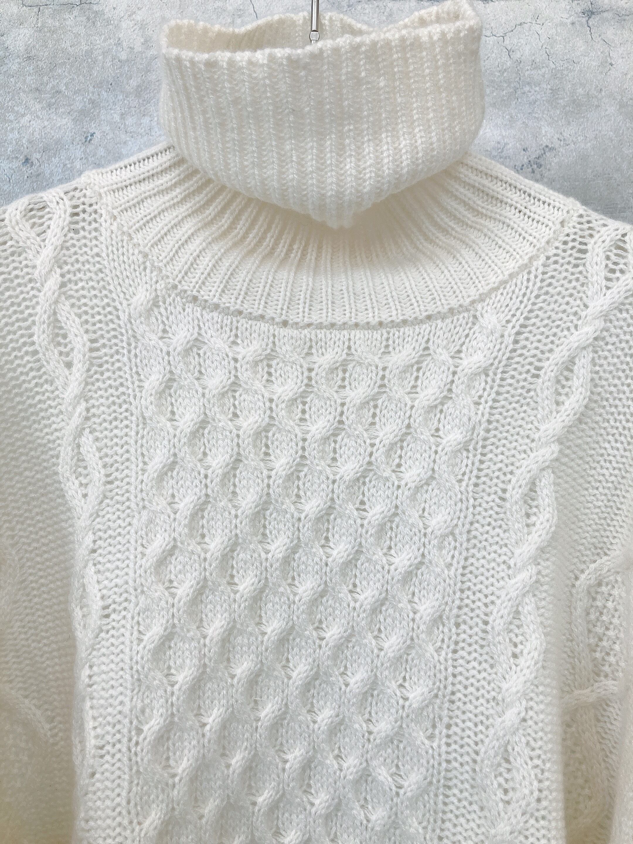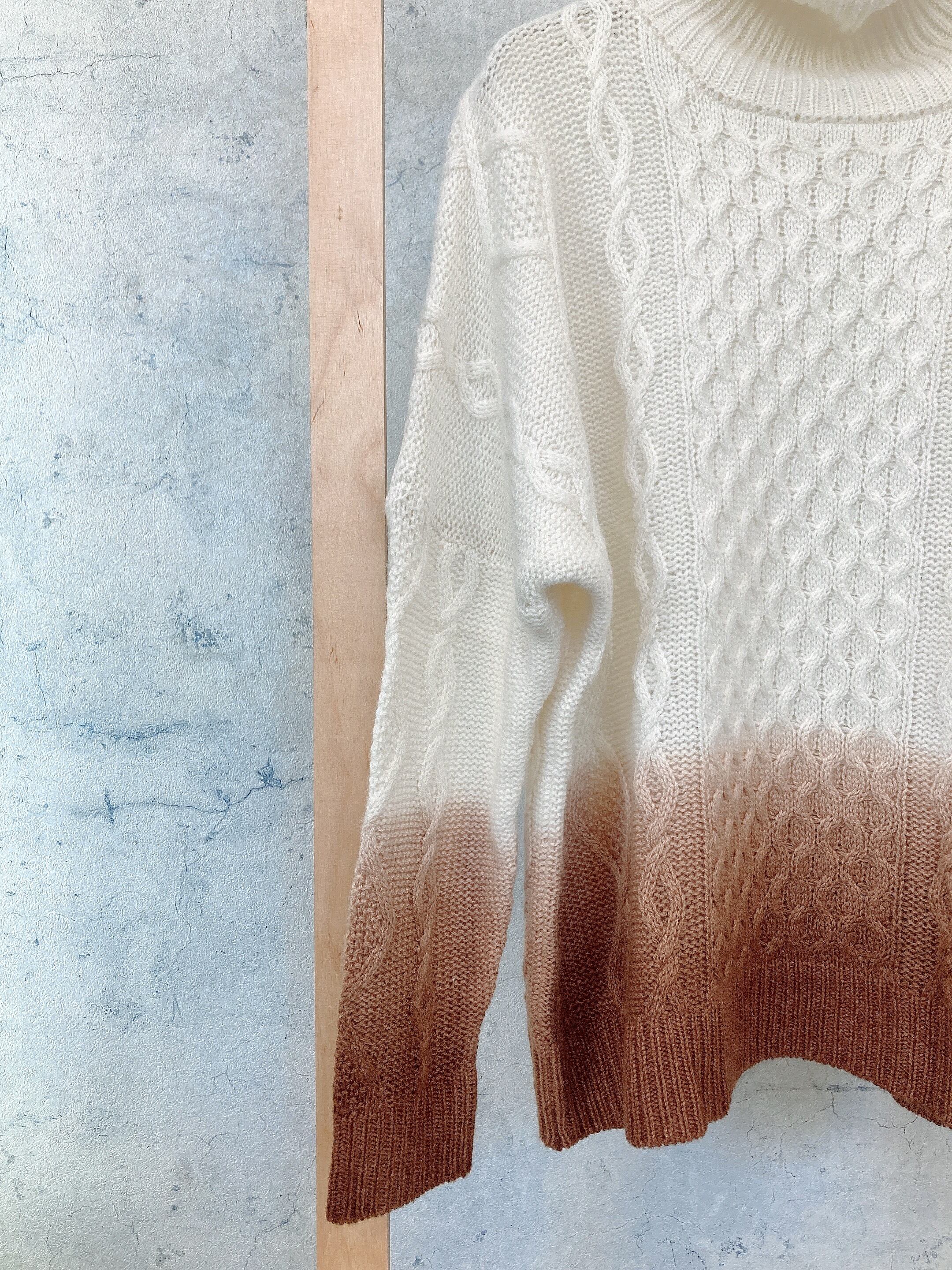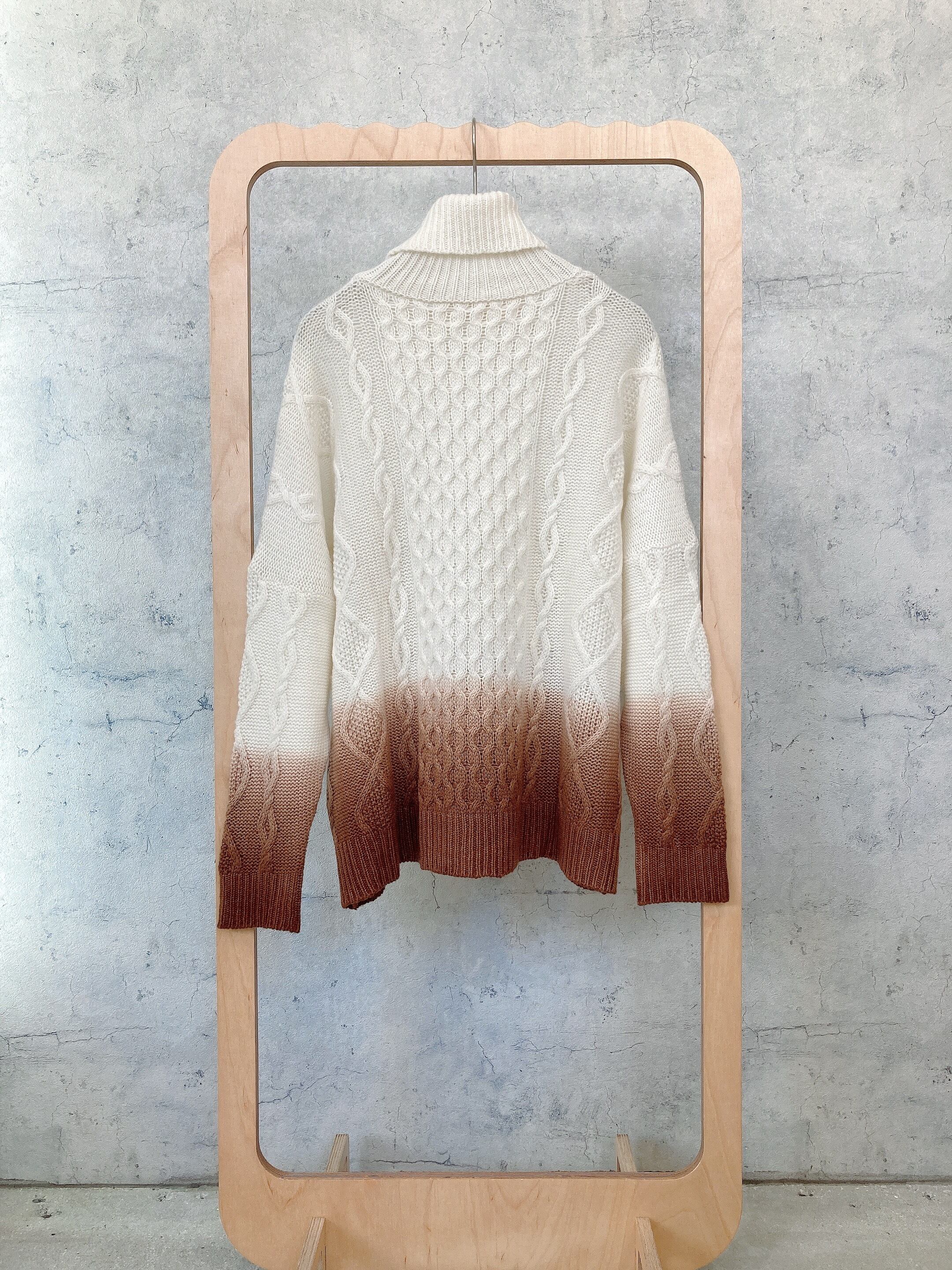 CIRCULATION送料無料【A・POIL アーポワル/フランス】タートルケーブルニット カシミヤ100% グラデーション ホワイト ブラウン NO: AP GLAMOUR-L55 / COL C(Natural Ecru / Print :Butter scotch )