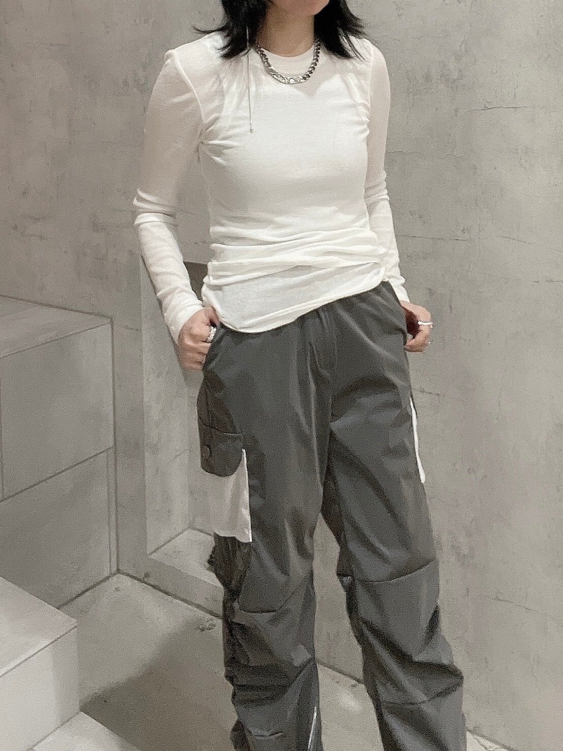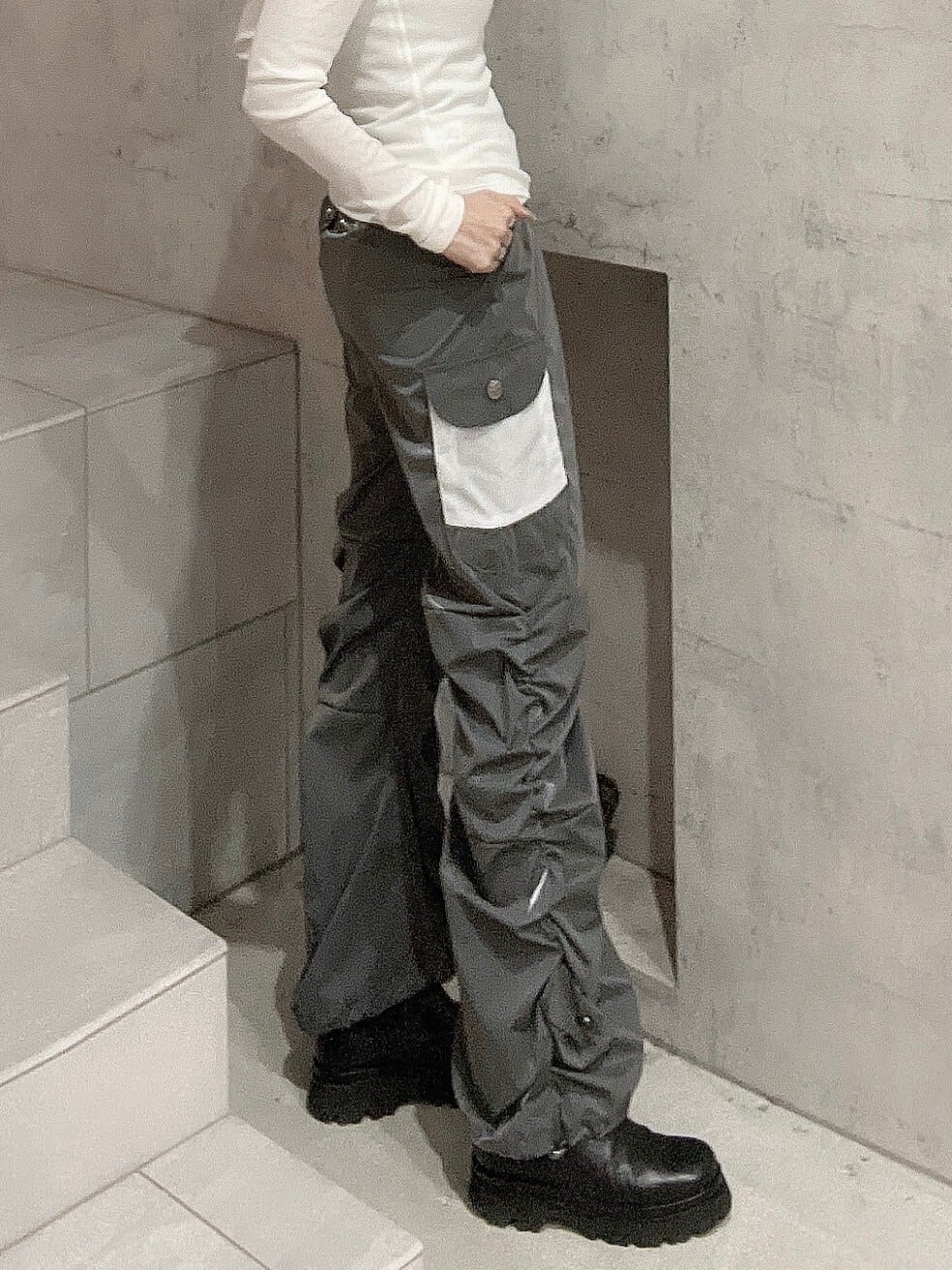 CIRCULATION送料無料【PHENOMENON SEEPER フェノメノンシーパー/ 韓国 】ナイロカーゴパンツ デザインパンツ 韓国 NO:PS25AB27 / GREY ( グレー )