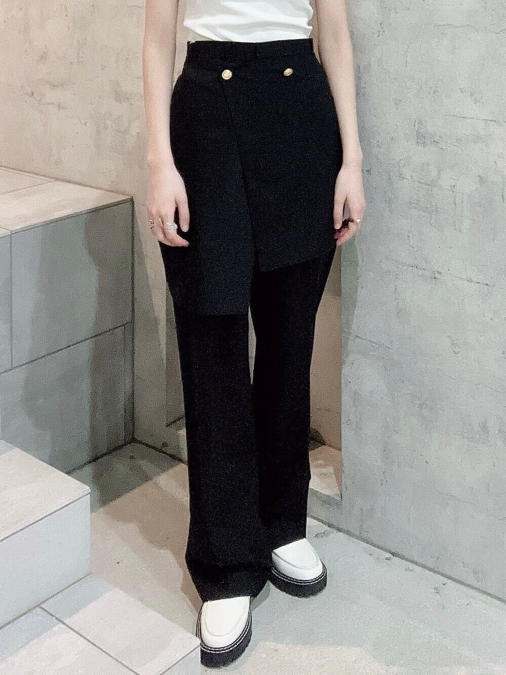 またラップのボタンを外したり、後ろにラップを持ってきたりとデザインパンツとしても有能◎