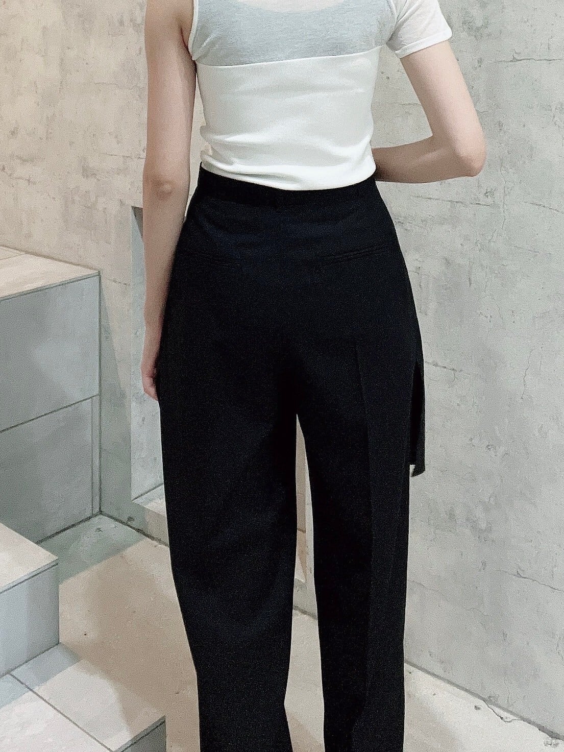 CIRCULATION送料無料【 EENK インク / 韓国 】ラップパンツ サマーウール100% ブラックパンツ セットアップ 入卒 NO: EEA-1P151-PT04-BK / Black